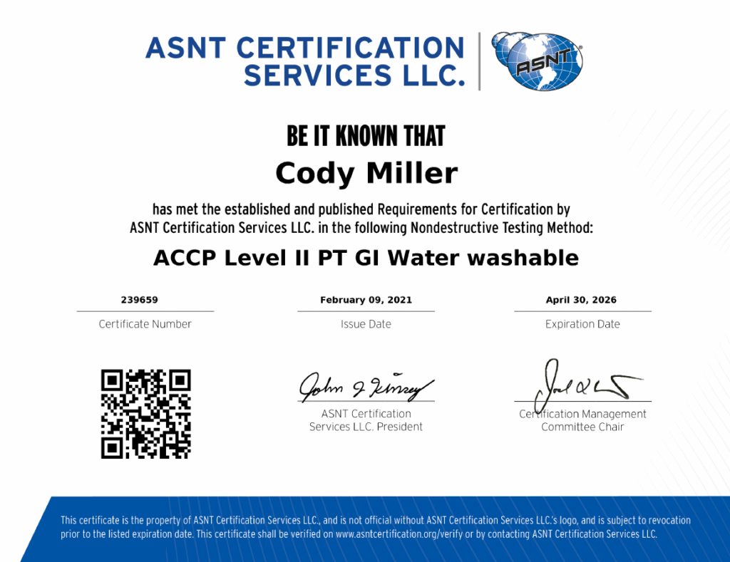 Nondestructive Testing (NDT) Certificates & Capabilities